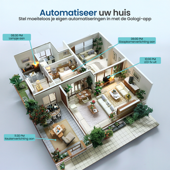 Stel eenvoudig schema’s in om energieverspilling te voorkomen. Bovendien monitor je het stroomverbruik direct in de Gologi app, zodat je altijd grip hebt op je energiekosten!
