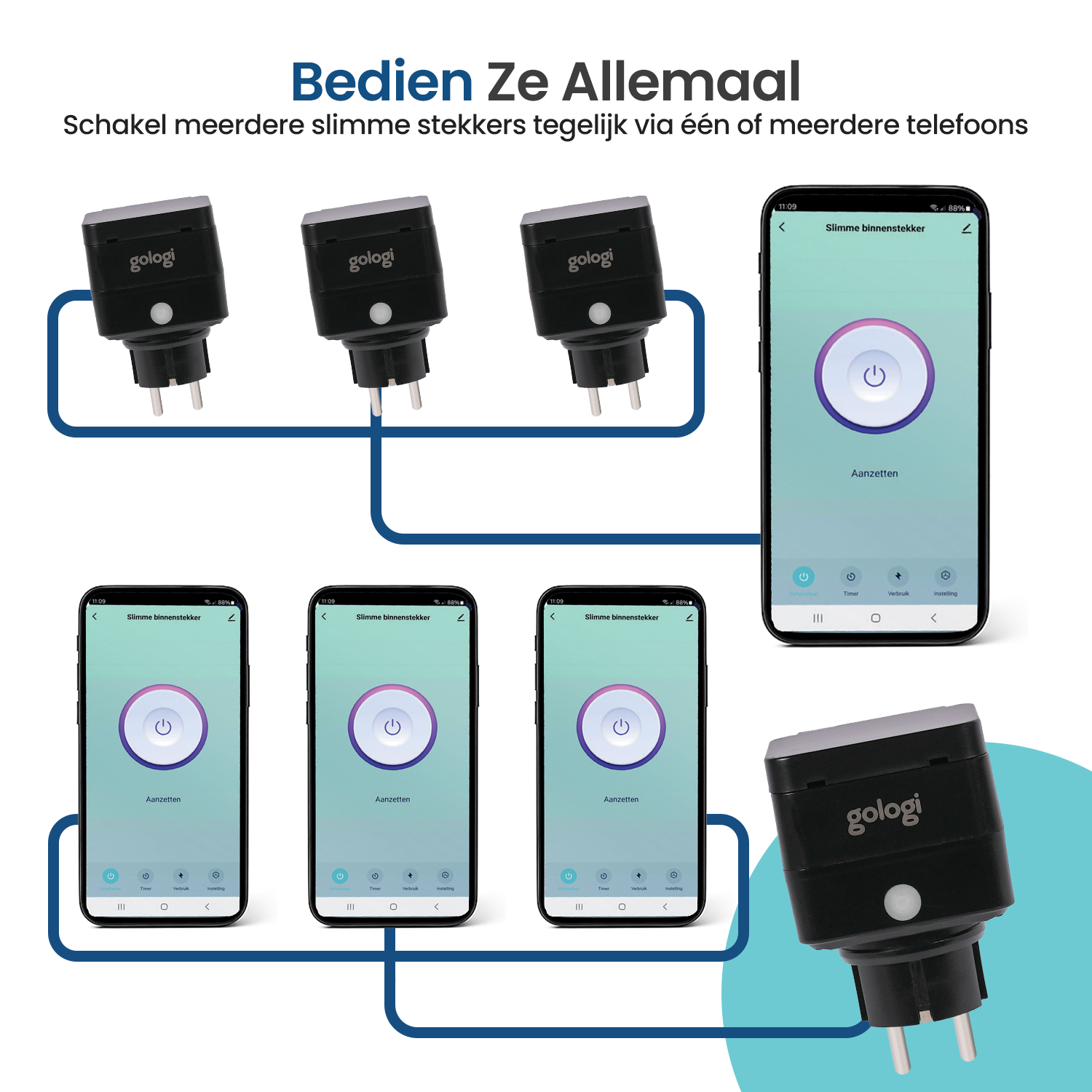 Stel eenvoudig schema’s in om energieverspilling te voorkomen. Bovendien monitor je het stroomverbruik direct in de Gologi app, zodat je altijd grip hebt op je energiekosten!